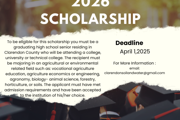 The Clarendon Soil and Water Conservation District is a non-profit organization that depends on the financial support from affiliate members. Through your donation, the District is better able to promote conservation in all schools in the county as well as to sponsor the various programs available that promote conservation stewardship within Clarendon County.